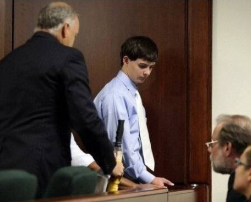 아직 애띤 소년이 어두운 표정으로 법정에 들어섰습니다.