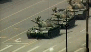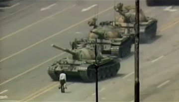 그리고 인민의 군대 가 인민을 향해 포신을 겨누며 광장으로 들어오게 됩니다.