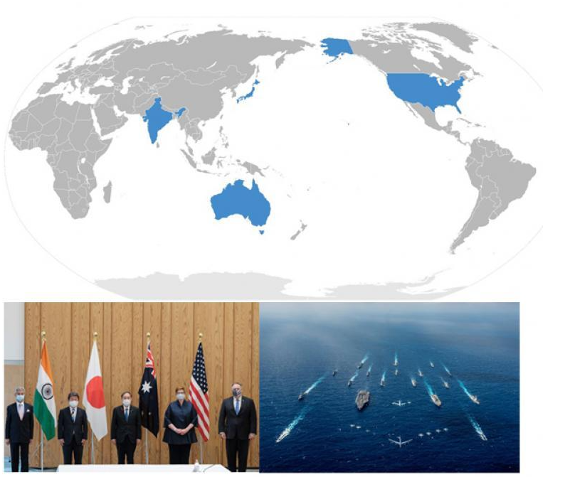- 인도·태평양 전략의 당사자인 미국·인도·일본·호주 등 4개국이 참여하고 있는 비공식 안보회의체로, 미국·인도·일본은 매 년 말라바르 합동 해상훈련을 실시하고 있다.