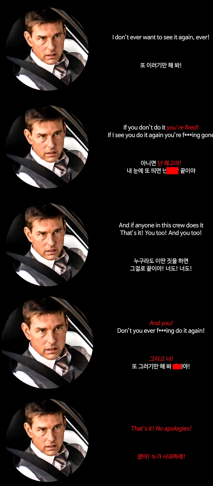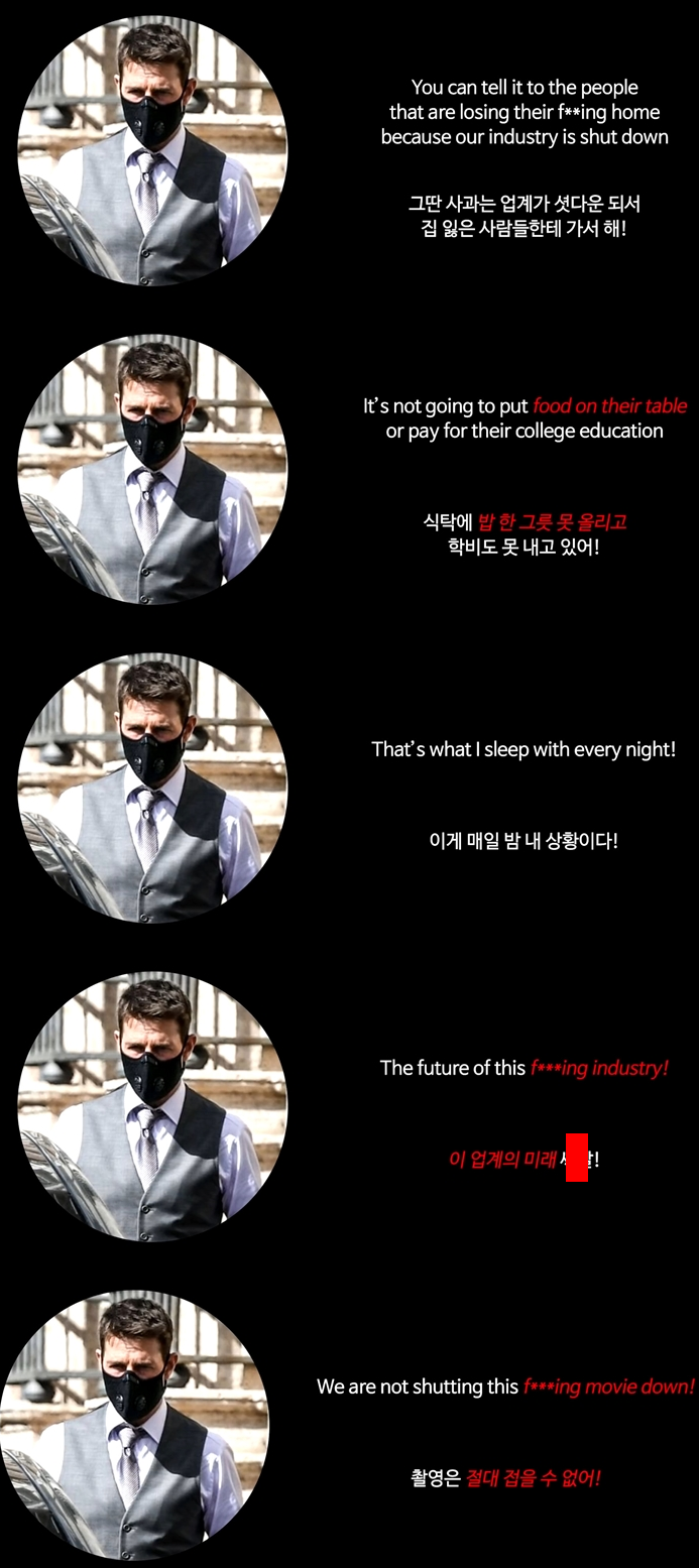 코로나 방역 수칙을 어긴 스태프에게 맞는 말로 분노하는 톰 크루즈의 녹음본이 공개되었습니다.
