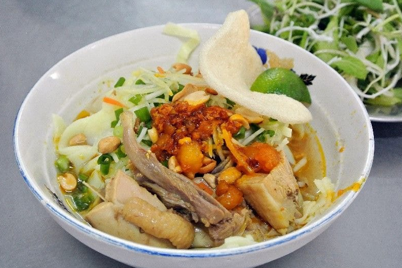 호이안의 명물 음식으로 우동 면처럼 두꺼운 쌀국수에 돼지고기와 각종 야채를 넣어 먹는 비빔 국수.