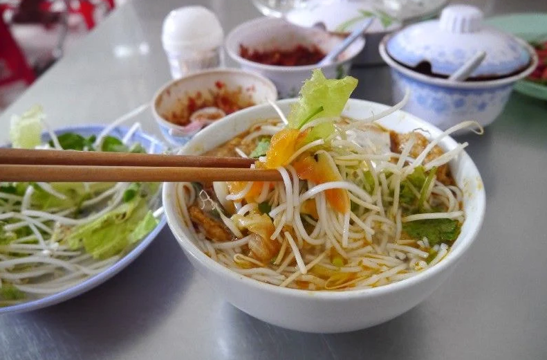 베트남 사람들의 단골 아침 메뉴. 해산물 버전, 게 국수 버전(민물 꽃게)도 별미이다.