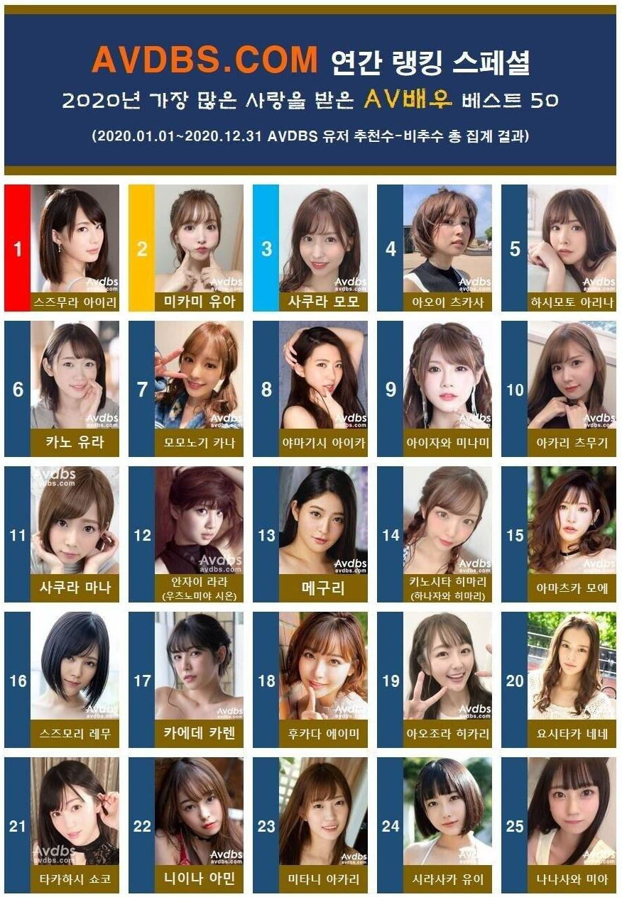 2020년을 빛낸 AV 배우 50 정보가 있어 가져와 봅니다.