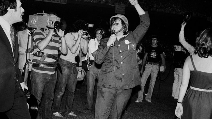 경기장에 난입해 디스코 음반을 미친 듯이 부수고는,